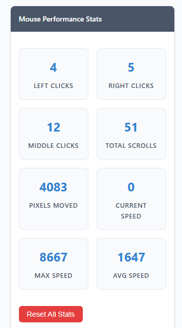 - Movement Tracking: See how smoothly your mouse moves with real-time speed monitoring